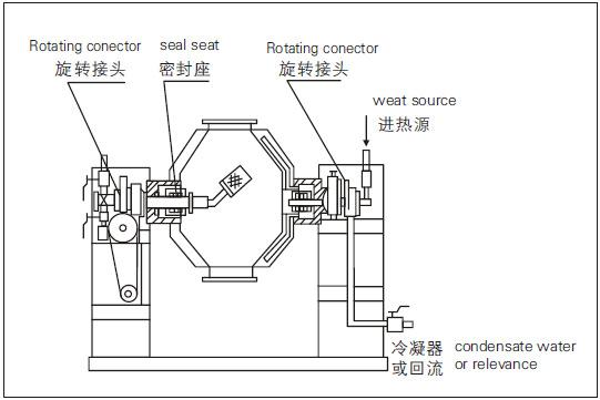 在密閉的夾層中通入熱能源(如熱水、低壓、蒸汽或?qū)嵊?,熱量經(jīng)內(nèi)殼傳給被干燥物料。