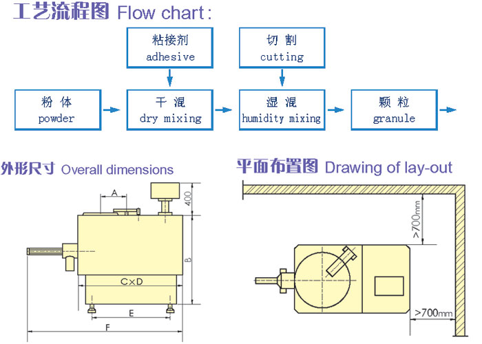 粉體物料與結(jié)合劑在圓筒形容器中由底部混合槳充分混合成濕潤軟材,然后由側(cè)置的高速粉碎槳切割成均勻的濕顆粒。